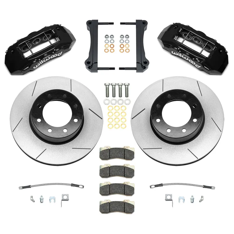 Wilwood’s Tactical Extreme TX6R Big Brake rear kits are ultimate in braking performance for Truck, SUV and Armored Vehicles. Using TX6R radial mount six-piston calipers and massive 15.00” to 16.00” GT-60 directional vane Spec-37 alloy rotors, these kits deliver consistent stopping power and extreme duty durability under sustained high heat with this ready to bolt-on kit. The calipers are volume matched for compatibility with original equipment power brake system output. TX6R rear kits replace the factory disc brakes and use the OE parking brake assembly as a compliment to front big brake upgrades. Kits include radial mount caliper brackets, and all the necessary hardware to complete the installation. Braided stainless steel flex lines will need to be purchased for some applications.