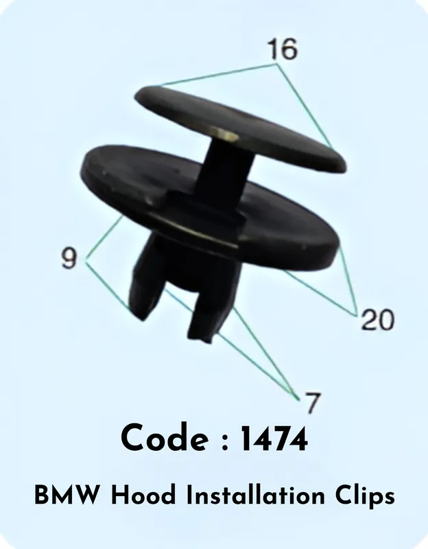 Secure your BMW’s hood with precision-engineered installation clips designed for reliable fastening. This set of 10 clips ensures proper alignment and stability, preventing hood rattle and movement during operation. Built to withstand vibration and temperature fluctuations, these clips maintain their grip over extended use. Compatible with BMW models, they offer a straightforward installation process without requiring additional modifications. Essential for maintaining hood integrity and vehicle safety, these clips are an ideal replacement or upgrade for worn fasteners. Keep your BMW’s hood securely in place with dependable hardware engineered for performance.