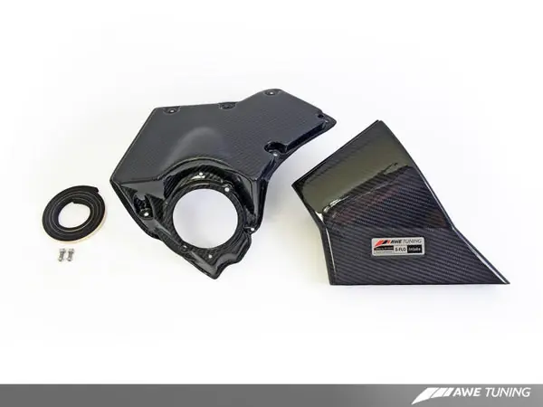 For drivers looking for an intake that not only performs, but also looks good doing it, the AWE S-FLO Carbon Intake is the one. The S-FLO Carbon Intake is comprised of three primary components: (1) The washable S-FLO Filter and (2) our high-flow, 4-ply Nomex®, fluorosilicone lined, steel wire reinforced silicon air tube and (3) the 2×2 twill carbon fiber cover.By deploying the fully enclosed S-FLO Carbon Intake, the ambient ram-air is drawn into the inlet and fed beneath the S-FLO’s carbon cover, keeping it cool compared to an open element configuration susceptible to engine bay temperatures. Keeping this ambient ram-air cool results in impressive power gains filtered through the AWE S-FLO Intake. The AWE S-FLO Carbon Intake includes the S-FLO Carbon Cover, S-FLO Intake, S-FLO Filter, and all necessary brackets and mounting hardware.
