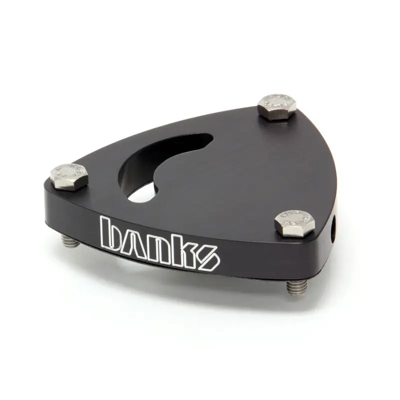 - Creates an unmistakable sound! Features & Benefits: Reduces intake air temperature by venting hot air to atmosphere instead of back into the compressor inlet, Quickens turbo response by reducing the pressure on the compressor wheel during drop throttle, Creates unmistakable sound, Military spec hard anodized spacer plate with engraved Banks logo, Stainless steel hardware, Profile-matched precut gasket, Designed to work with Banks Sidewinder Turbo System. The Banks Blow-Off Valve Spacer is a cool and functional addition to the Sidewinder Turbo System.
