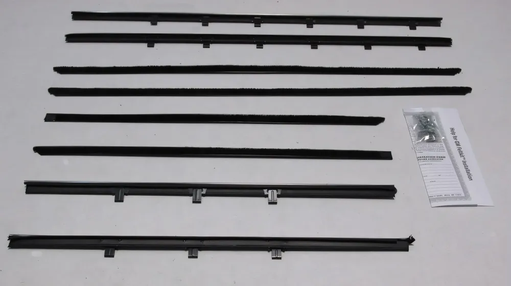 Kits vary by application and may include inner and outer window sweeps, outer sweeps only, or driver- or passenger-side components. Please review the product description carefully to confirm exactly which pieces are included for your specific vehicle.