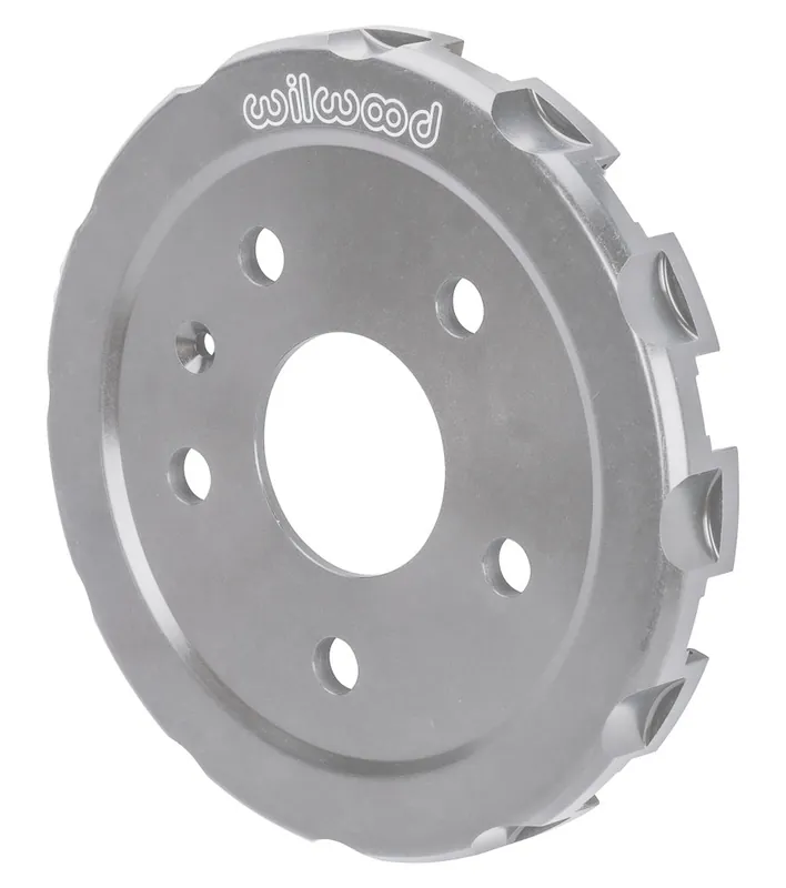 Wilwood’s new Big Brake Dynamic Lug Drive hats incorporate a new rotor mounting system that eliminates the rotor bolts and allows the rotors to move independently of the hats as they expand and contract through heat cycles. All thermally generated stress is removed from the rotor attachment points. The rotors stay flatter and run truer. Brake response and pedal feel remain consistent. Pad knock back and rotor drag are eliminated. The hats are no longer distorted by stresses generated by thermal expansion and shrinkage of the rotors. All problems associated with thermal distortion, including bolt hole alignment issues when trying to re-install new rotors on a previously used hat, are eliminated.