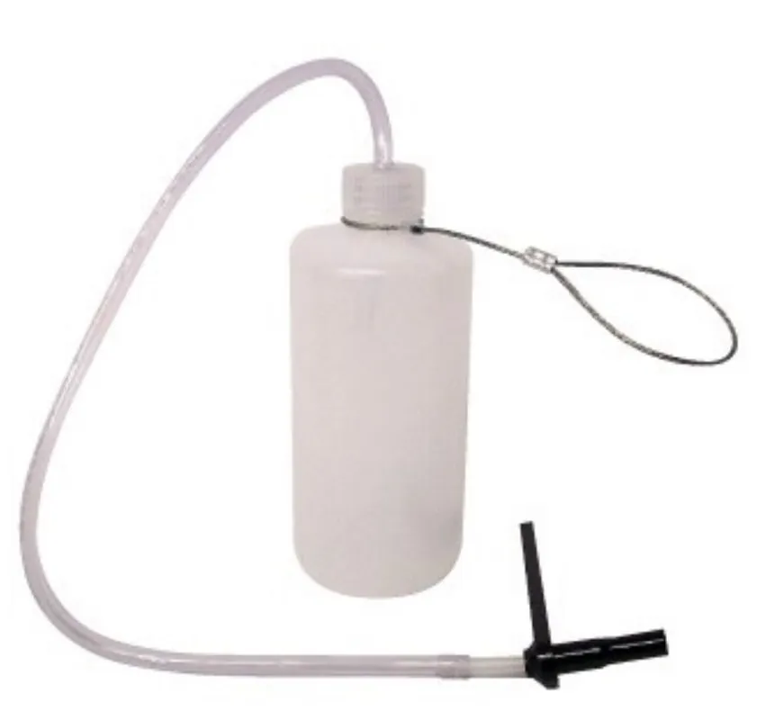 The kit also has a hose through the socket to catch the fluid and carry it to the plastic bottle.
