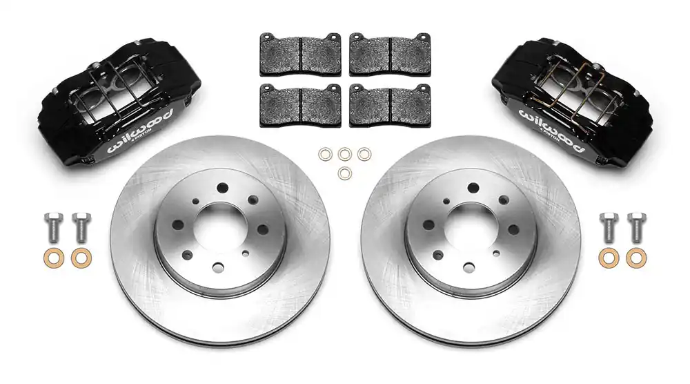 Wilwood’s new DynaPro Honda/Acura Caliper (DPHA) for Honda and Acura models originally equipped with 262mm diameter rotors.These calipers bolt directly to the stock mounts on factory spindles, fit over the OE 262mm diameter rotor, accept the OE brake hose, and clear many factory aluminum wheels including the EM1 Si 15” wheel. Designed around Wilwood’s proven DynaPro series four piston calipers, the forged billet bodied DPHA caliper delivers high-strength clamping force and positive stopping power. Four stainless steel pistons provide fully balanced pad loading, along with the corrosion resistance and thermal retardant qualities of the stainless alloy that will keep your calipers cooler and running trouble free for many more miles.Calipers work perfectly with the OE master cylinder and ABS functions, and are available with either black or red high-gloss, high-temp, brake fluid resistant sealed powder coat and feature Wilwood’s signature logo.