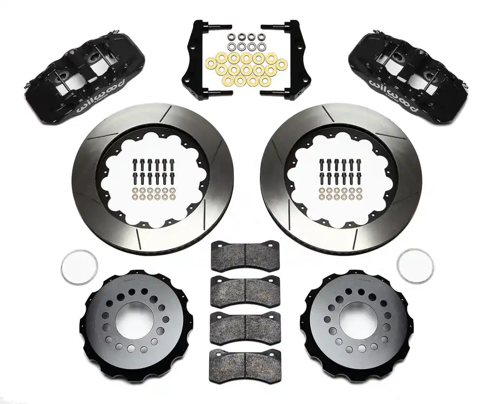 AERO4 Big Brake Rear Axle Kits replace the factory disc brakes and use the OE parking brake assembly as a compliment to front big brake upgrades on late model high performance vehicles. High capacity braking from the W4AR calipers, BP-10 compound pads, and oversized 14.00 inrotors are matched to the OE master cylinder output, ABS function, and individual vehicle bias requirements. Enhanced brake performance, increased durability, and high-tech style compliment big wheel, tire, and suspension upgrades on customized vehicles and all others with increased brake requirements.