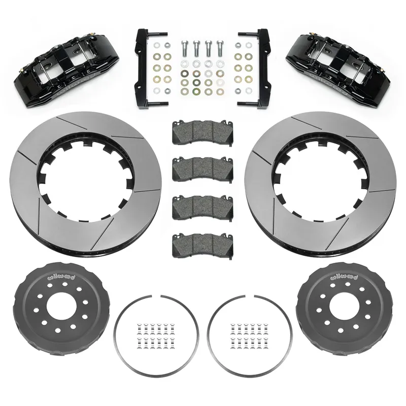 SX6R calipers were designed for the specific purpose of providing high capacity braking with large diameter rotors for extreme duty and race vehicles. It is the largest dual purpose caliper Wilwood has produced, providing big brake performance for show and dual purpose street and track vehicles. Offering additional enhanced braking with wheel and tire upgrades. Kits are fully compatible with OE master cylinder output and ABS function. Directional 72 staggered vane 14.00” to 15.00”rotors provide maximum cooling for sustained high heat durability.