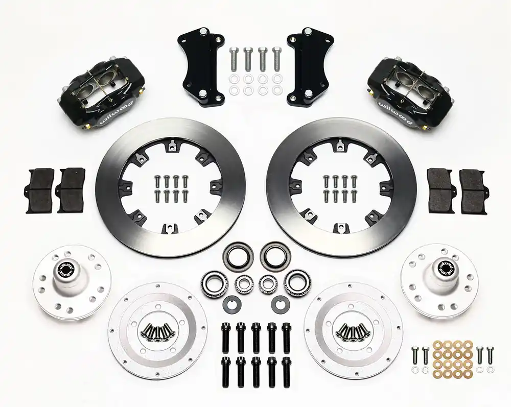 FDL Big Brake Front Hub Kits provide the added advantage of larger diameter brake rotors for traditional non-ABS spindles on American muscle cars and vintage rods. Forged billet Dynalite calipers, 12.19” diameter rotors, and high performance Wilwood brake pads generate big brake stopping power to compliment wheel, tire, and suspension upgrades on all types of custom show and performance street / strip machines.A full range of options for caliper finish and rotor design provide custom builders with the ability to personalize the style and performance requirements of the mildest to the wildest machines.