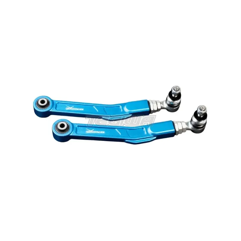 The camber kit allows fine adjustments to the rear end camber setting of the vehicle. It can either help maximize wheel contact patch to improve cornering grip or get your car back to original alignment specs after lowering to prevent uneven tyre wear. The arms are made of anodized CNC billet aluminum alloys to offer g