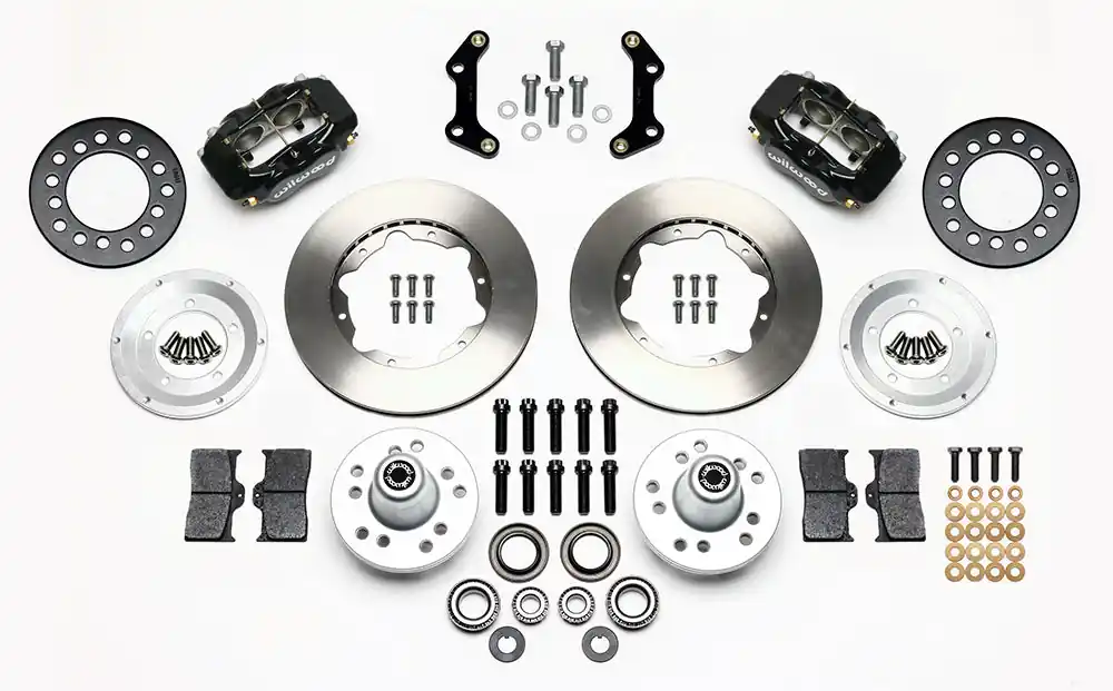 Wilwood’s new limited offset FDL Pro-Series Front Hub Kits for Chrysler, Dodge & Plymouth 1970-1972 B & E-Body vehicles, offer disc brake upgrade solutions for OEM Disc spindles.We have completely redesigned our Pro Series line of brake kits using a larger 11 inrotor and new forged aluminum hubs with the express purpose of maintaining the factory wheel position.This new kit narrows the track with by only-.06 infrom original disc brake position.Based on the venerable forged billet Dynalite caliper, these versatile kits are easily optioned to suit the braking requirements and style preferences for a daily driver, serious competition, or the most discriminating show enthusiast. Most vehicle applications require no modifications for installation, and provide plenty of clearance inside popular 15 inwheels. FDL Pro-Series kits can be used with either manual or power boost master cylinders.Kits come complete calipers, rotors, hub assembly, brackets and hardware. Requires purchase of additional brake lines shown below.