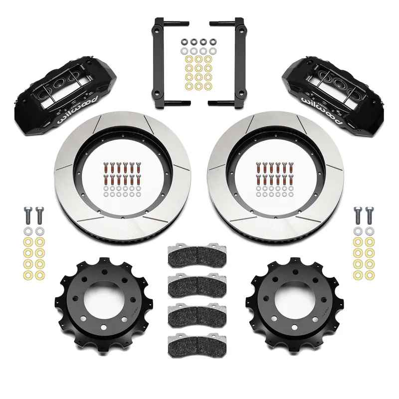 Wilwood’s Tactical Extreme TX6R Big Brake rear kits are ultimate in braking performance for Truck, SUV and Armored Vehicles. Using TX6R radial mount six-piston calipers and massive 15.00” to 16.00” GT-60 directional vane Spec-37 alloy rotors, these kits deliver consistent stopping power and extreme duty durability under sustained high heat with this ready to bolt-on kit. The calipers are volume matched for compatibility with original equipment power brake system output. TX6R rear kits replace the factory disc brakes and use the OE parking brake assembly as a compliment to front big brake upgrades. Kits include radial mount caliper brackets, and all the necessary hardware to complete the installation. Braided stainless steel flex lines will need to be purchased for some applications.