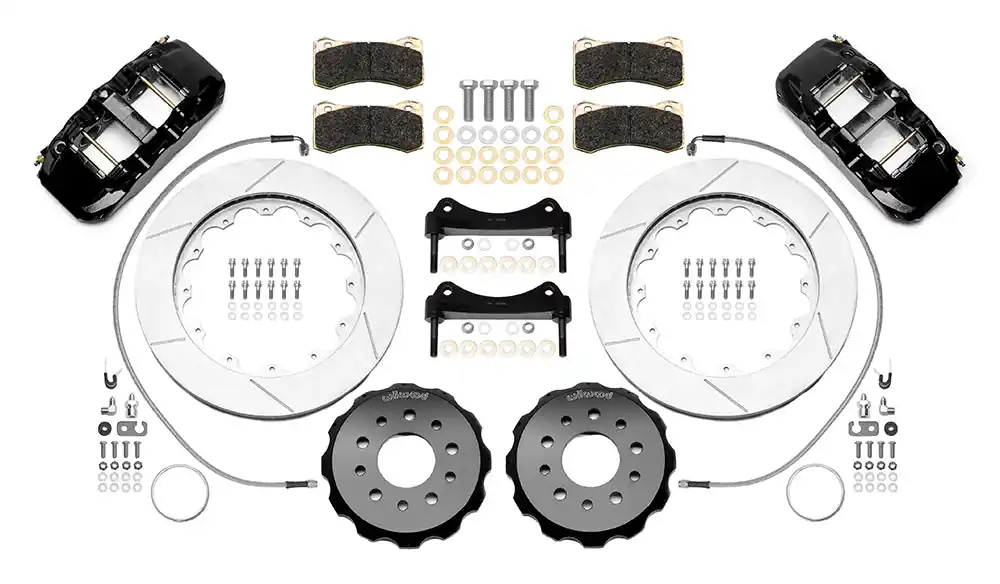 Wilwood’s 140-15892 Aero6 Big Brake front kit is designed specifically for 2018-up Jeep Wrangler JL series. This big brake kit combines 14.00” two-piece GT slotted rotors or SRP drilled and slottedwith lightweight aluminum hats, Aero6 six piston calipers, and BP-10 or BP-20 Smart Pads. AERO6 calipers were designed for the specific purpose of providing big capacity braking with large diameter rotors for heavy weight and extreme duty vehicles. It’s the biggest of the big, providing big brake performance for show and dual purpose street and track vehicles. It provides big stopping power for enhanced braking with wheel and tire upgrades. Kits listed for specific vehicles are fully compatible with OE master cylinder output and ABS function. Directional staggered vane 14.00” to rotors provide maximum cooling for sustained high heat durability.