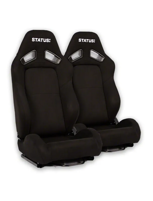 Top Quality Structure. The Status RTX Reclining Seats are the epitome of style, comfort, and performance for automotive enthusiasts. Crafted from premium suede, these seats not only offer a luxurious and tactile experience but also exude a sleek and sophisticated black design that enhances the interior of your vehicle. With a design that accommodates individuals with up to a 38-inch waist, these seats provide excellent support and comfort during even the most spirited drives. They are engineered to resist wear and tear, ensuring longevity and durability, even in high-performance or daily driving scenarios.