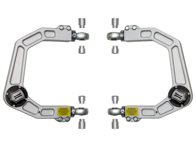 - ICON billet UCAs are made from CNC machined 6061 aluminum and feature PTFE-lined rod ends and ICON’s Delta Joint, a hardcore high-angle ball joint that combines the durability of a ball joint with the performance of a traditional uniball.