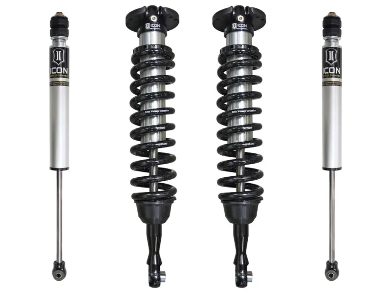 - ICON Vehicle Dynamics Toyota Tundra Stage 1 suspension systems are designed with maximum performance and the serious driver in mind. ICON engineers’ primary focus is to increase wheel travel and damping ability, which translates into outstanding vehicle control and ride quality both on and off-road. The Stage 1 system includes vehicle-specific tuned 2.5†coilover shocks featuring an internal reservoir for exceptional cooling properties. These coilovers are also height adjustable from 1-3†allowing the use of larger, more aggressive wheel and tire combinations. ICON 2.0 VS Aluminum Series rear shocks utilize a vehicle-specific valving that balances the performance of the truck from front to rear. The ICON Vehicle Dynamics 2007-UP Toyota Tundra Stage 1 suspension system is an excellent choice for those drivers looking to enhance the capabilities of their pickup on the road as well as in the dirt.