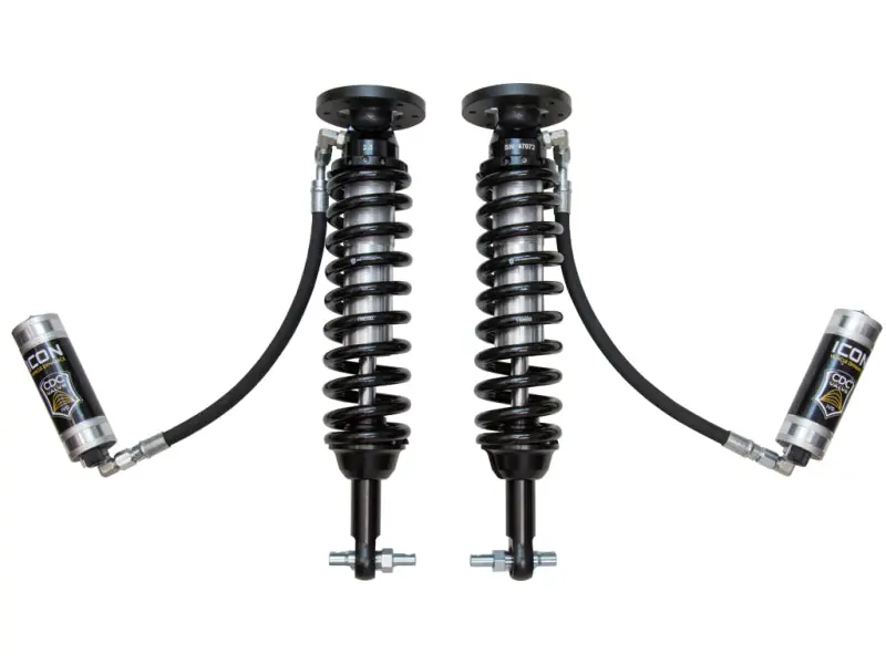 - The ICON Vehicle Dynamics V.S. Series 2.5” remote reservoir coilover shocks w/ CDCV are an incredible upgrade for the front end of the 2015-2020 Ford F-150 4WD truck. ICON’s Vehicle-specific valving provides a sport tuned feel on and off-road while offering 2-2.63” of lift height adjustability for use of larger, more aggressive wheel and tire combinations. ICON’s larger 2.5” shock body and increased piston area over stock components provides improved damping ability and outstanding ride characteristics across varying types of terrain. Remote reservoirs ensure optimum performance by increasing the duration of consistent damping regardless of situation, keeping the shocks at a cooler operating temperature during heavy use. The ICON CDC Valve upgrade is included for those desiring an easy way to tune the ride externally with 10 settings from soft to hard. When paired with ICON rear 2.0 Aluminum Series or 2.5 Series shocks, vehicle control will be balanced front to rear resulting in the best overall driving experience for your 2015-2020 F-150 4WD.