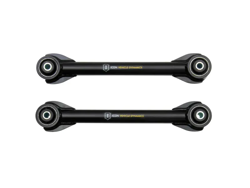 - ICON’s tubular steel rear upper link arms are a significant upgrade over the factory units due to increases in strength, adjustability, and performance. These components are made from CNC machined and notched 1026 DOM steel and welded in-house, providing a major improvement over the construction of the stock units. This rear upper link arm kit features multi durometer bushings that allow for noise free operation, reduced deflection, and maximum angularity without the need for periodic greasing and/or other maintenance.The quality bushings featured in these link arms allow the vehicle’s suspension to function as intended, without the bushing bind that limits the vehicle in stock form. After the design phase was completed ICON engineers put these parts through the “ICON1K” real-world test cycle for a final stamp of approval.
