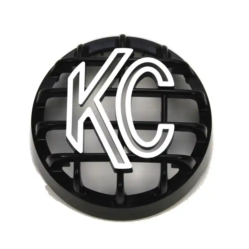 - KC HiLiTES 4in. Round ABS Stone Guard for Rally 400 (Single) – Black w/White KC Logo