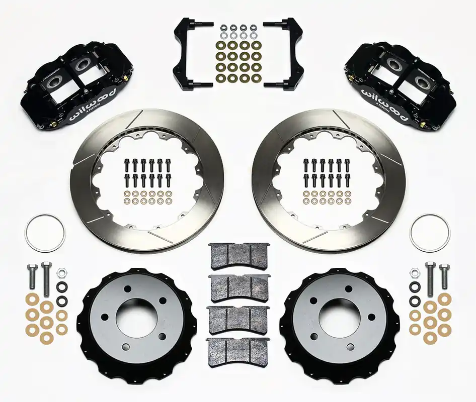 Forged Narrow Superlite 4R four piston calipers are combined with BP-10 compound pads and 13”-14” rotors in this group of big brake kits for custom high performance street and show machines. This group of specialized kits for cars, trucks, and SUV’s retain full use of the OE parking brake, master cylinder output, and ABS where used.FNSL4R rear kits provide complimentary style and performance with 13” and larger front brake upgrades in conjunction with wheel, tire, and suspension upgrades. Optional caliper finishes and rotor designs enable the builder to match style and performance on all applications.