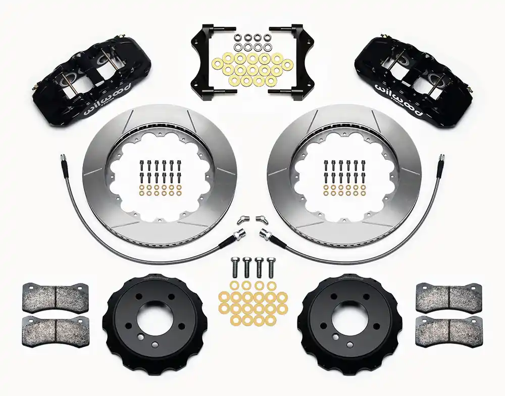 AERO6 calipers were designed for the specific purpose of providing big capacity braking with large diameter rotors for heavy weight and extreme duty vehicles. For cars, it’s the biggest of the big providing big brake performance for show and dual purpose street and track vehicles. For trucks and SUV’s, it provides big stopping power for towing, off-road, and enhanced braking with wheel and tire upgrades. Kits listed for specific vehicles are fully compatible with OE master cylinder output and ABS function. Directional staggered vane 14.00” to 14.25”rotors provide maximum cooling for sustained high heat durability.