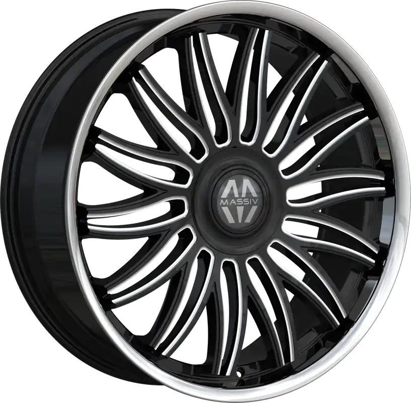 Massiv 928 Wheel 22×9 5×115 & 5×120 Black Milled w/ Stainless Lip And Floating Cap 15mm