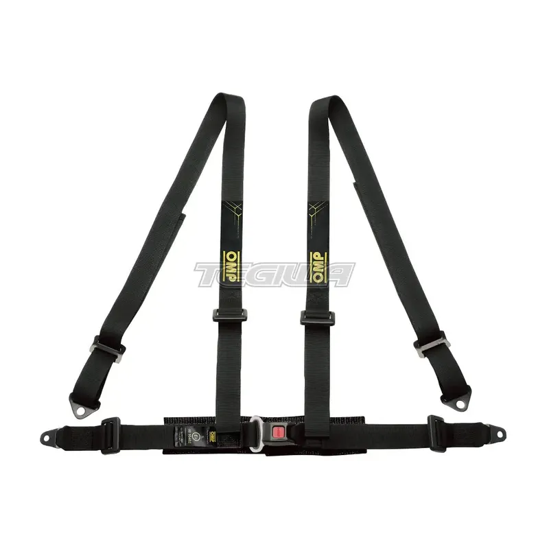 OMP 4 Points ECE Harness – Road 44 point harness, 2″ shoulder straps and lap belts, bolt in attachment. Central push button release. Supplied with 7/16″ bolts.COLOR Blue (DA505041) black (DA505071) Red (DA505061) POINTS 4 WIDTH STRAPS 2″ shoulder / 2″ lap BUCKLE Push button