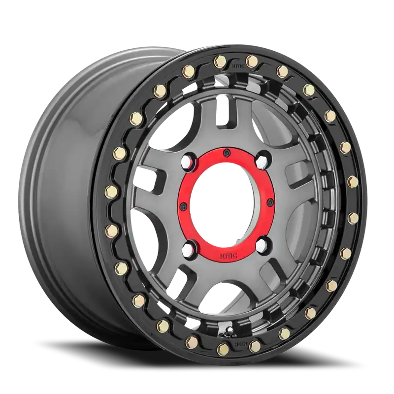 Premium KMC Recon Beadlock UTV KS240 14×7 +38 4x137mm 112.1mm Gunmetal Gloss Black Ring