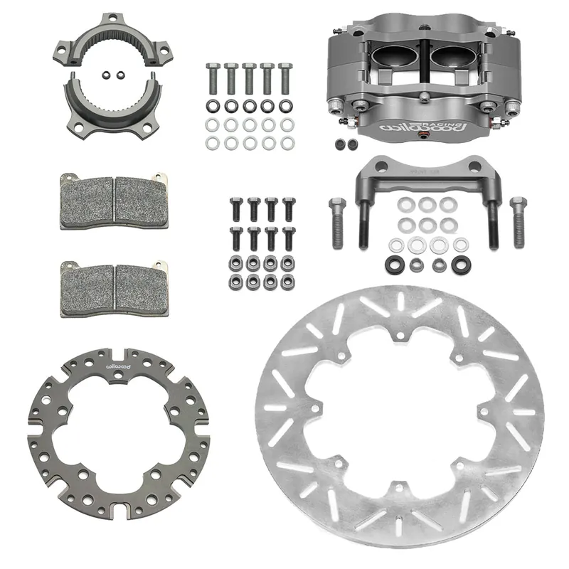 Billet Narrow Dynalite Radial Sprint Inboard Kit Features: A fully engineered bolt-on brake system for sprint car quick change rears with 3.00 x 46 splined axles. With 12.00 inx .360 solid Titanium rotor and a newly designed dynamic mount rotor axle clamp, offer the lowest rotating weight available for Sprint racing. The lightweight advantages of Wilwood Sprint rotors are fortified with the high durability, long wear, and superior heat control properties of advanced materials. Newly redesigned Type III hard anodize Billet Dynalite Radial mount calipers with BP-28 pads, produce superior stopping power and consistent fade-free response. Kit includes Axle Clamp with Dual Mount Rotor Adapter with T-nuts, radial mount bracket assembly and mounting hardware.