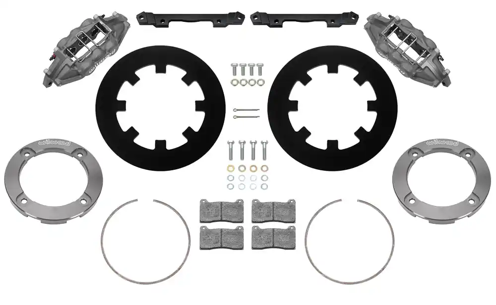 Wilwood’s matched front and rear UTV Race brake kits feature dynamically-mounted rotors and upgraded calipers for popular side-by-side machines. Kits combine fixed mount multi-piston calipers with greater clamping force, BP-20 (High Friction) brake pads andlarger diameter floating rotors for more brake torque, improving braking on higher-powered UTVs. Forged aluminum differential-bore four and six piston calipers reduce deflection and provide more uniform engagement to increase braking force and improve feel. High-friction steel rotors, are up to 20% greater in diameter and thicker for less distortion. Dynamically mounted rotors reduce thermal stress and prevent piston knockback from rough terrain.