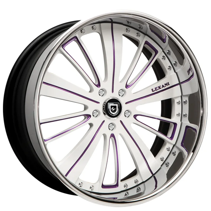 Super Sale 26″ Lexani Forged Wheels LF-708 Gloss White with Purple Accents Face with Chrome Lip Rims