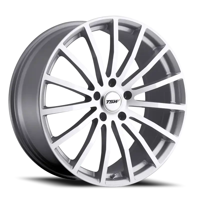 TSW Mallory 5 SL 20×10 +25 5×114.3mm 76mm Silver Mirror Cut Face