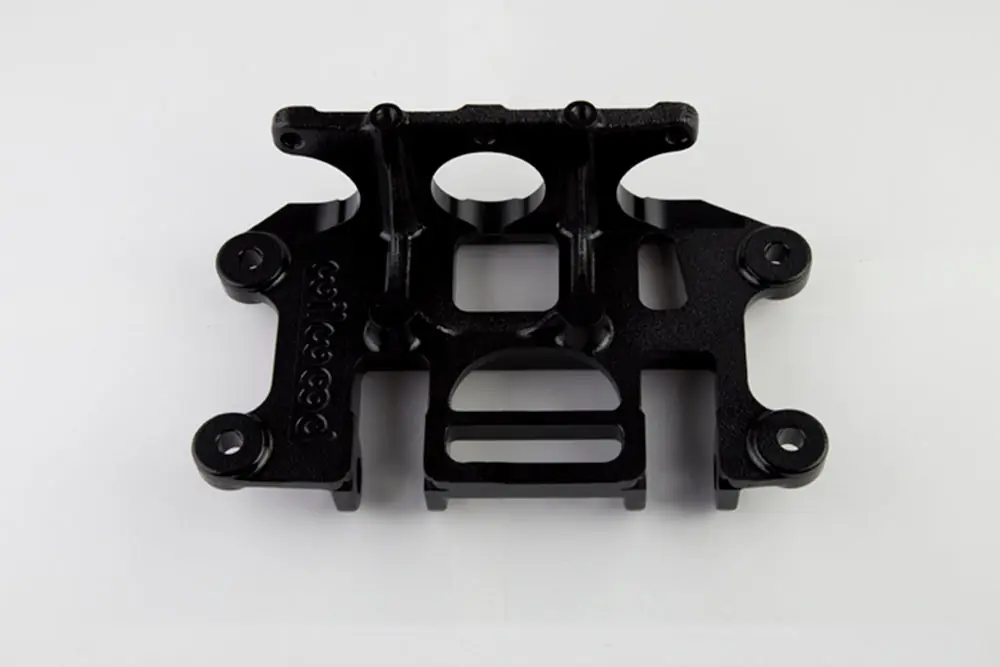 Replacement Pedal Base for dual pedal assemblies with single balance bar pedal and clutch in forward facing mount. Used in swing mount configurations. Engineered from high strength aluminum alloy with a black e-coat finish for corrosion resistance.