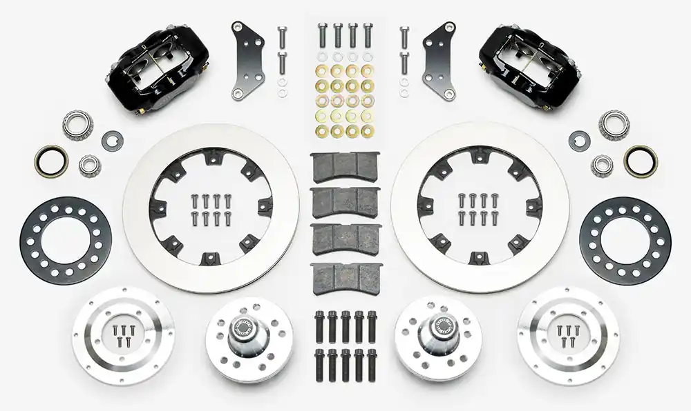 FDL Big Brake Front Hub Kits provide the added advantage of larger diameter brake rotors for traditional non-ABS spindles on American muscle cars and vintage rods. Forged billet Dynalite calipers, 12.19” diameter rotors, and high performance Wilwood brake pads generate big brake stopping power to compliment wheel, tire, and suspension upgrades on all types of custom show and performance street / strip machines.A full range of options for caliper finish and rotor design provide custom builders with the ability to personalize the style and performance requirements of the mildest to the wildest machines.