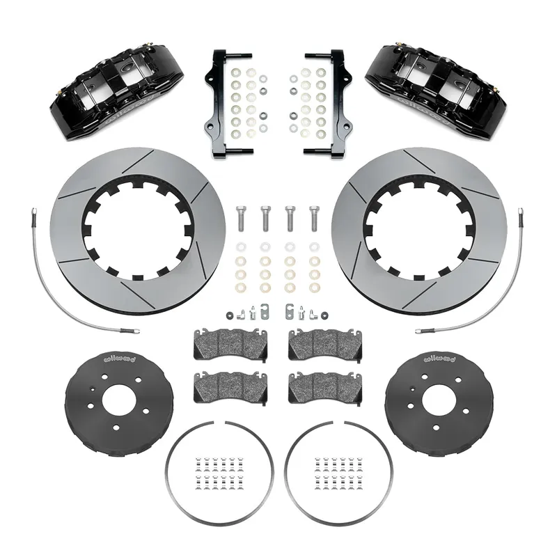 SX6R calipers were designed for the specific purpose of providing high capacity braking with large diameter rotors for extreme duty and race vehicles. It is the largest dual purpose caliper Wilwood has produced, providing big brake performance for show and dual purpose street and track vehicles. Offering additional enhanced braking with wheel and tire upgrades. Kits are fully compatible with OE master cylinder output and ABS function. Directional 72 staggered vane 14.00” to 15.00”rotors provide maximum cooling for sustained high heat durability.